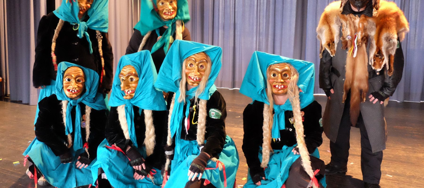 Ein außergewöhnliches Erlebnis erwartete am vergangenen Freitag zum Schulabschluss vor den Faschingsferien die Kinder und Jugendlichen der Burghalde: das Eulenloch-Hexen -Team aus Schömberg war zu Gast und brachte mit Masken, Tänzen und Geschichten eine aufregende Stimmung auf das Burghaldengelände.
